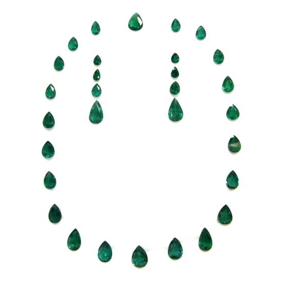 The shimmering emeralds exhibit excellent color and shape, revealing skilled craftsmanship. The pear-cut emeralds emit dazzling shine in a graceful green color. The well-crafted emeralds are perfect for embellishing different precious accessories.