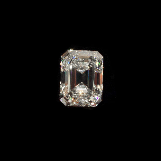 This 11.47ct diamond features a classy emerald-cut design. The top-quality diamond boasts high clarity and color grades. The multi-faceted diamond has been finely polished for added sparkle.