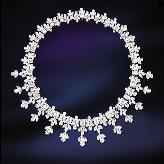 This splendid necklace features 71.44 carats of emerald-cut diamonds for excellent radiance. The flower-patterned diamonds boast an air of femininity and elegance. The sparkling stones are delicately set in 18K white gold for lasting beauty and shimmer.