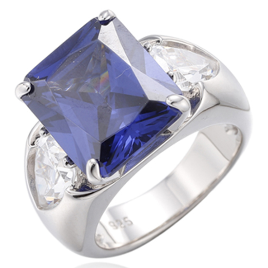 Emerald Cut Diamond Yellow And Pear Shape White Cubic Zircon Rhodium Silver Ring