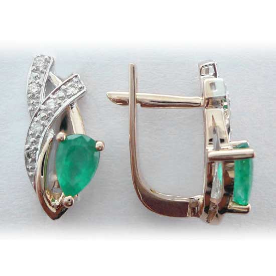 This pair of earrings comes with a graceful and stylish appearance. Each earring features a pear-shaped emerald decorated with small diamonds. The body of the earring is made of 14K gold.