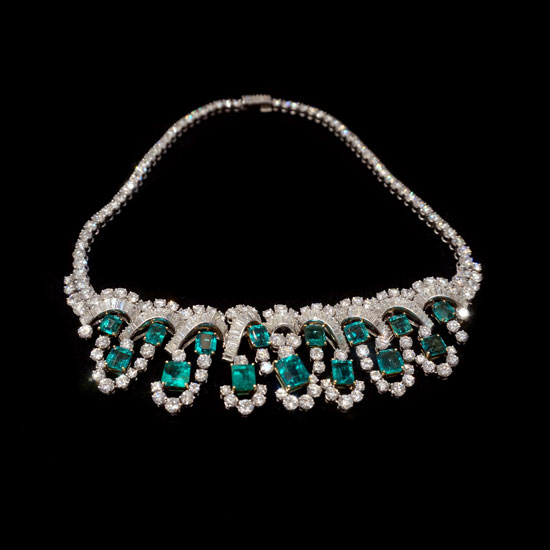 This is a fashionable necklace that comes with a high-gloss finish. The well-laid diamond and emerald gemstones add a touch of luxuriousness to the whole piece. This charming necklace is an ideal addition to complete your jewelry box.