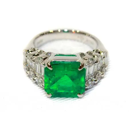 - Materials: 4.76ct emerald, 1.40ct diamond, platinum 900.