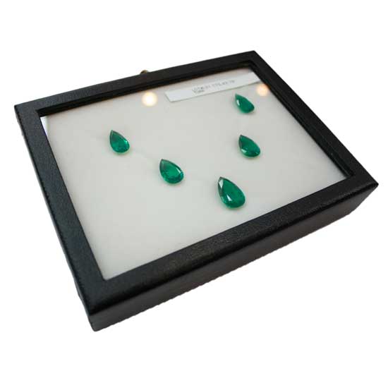 This set of emerald stones showcases a precise pear cut. Handled with delicate techniques, the beautiful emerald stones exude enchanting luster with an intense green hue. This set of emerald stones is ideal for crafting jewelry.