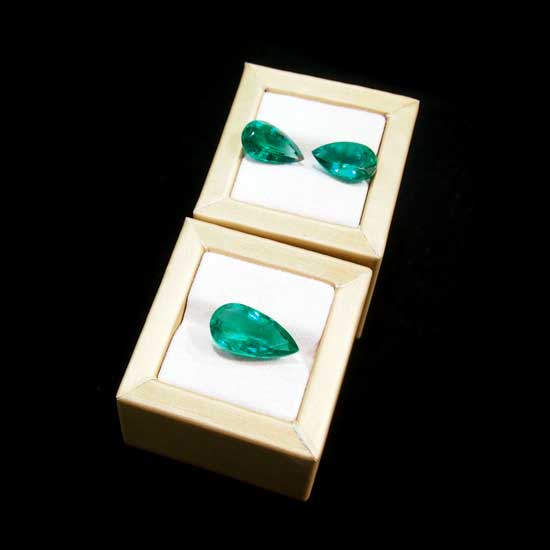 The displayed emerald features a drop shaped design that lures in onlookers’ hearts easily. The faceted appearance is highlighted by irresistible brilliance. This refined emerald is widely adopted in the jewelry making industry.