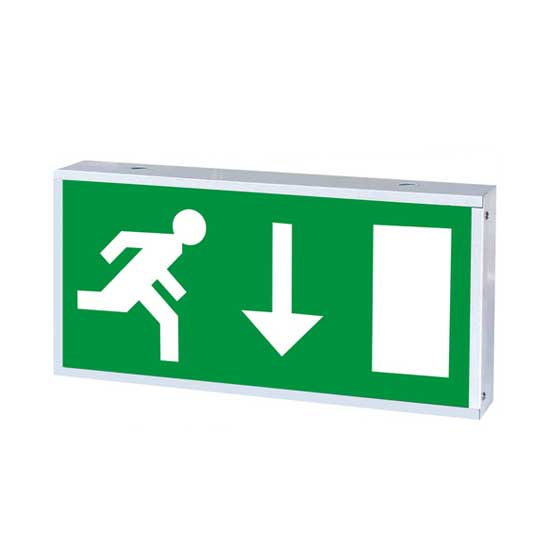 This emergency exit box features simplistic graphics in green and white that is eye catching and easy to understand. The light box adopts a high-strength steel housing and a PC diffuser for extra durability. Models designed with LED light sources are also available.