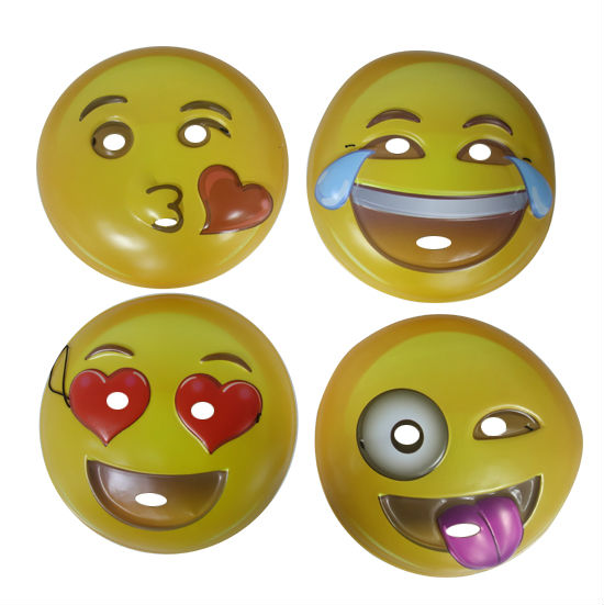 Reveal your whimsical side and stand out at the party with these Emoji masks. The designs include tears of joy, heart eyes, kiss face, and winking face, which are delicately molded to showcase delicacy with textures and vivid colors. With the cut-out holes at eye and mouth positions, you can see and breathe comfortably as usual.