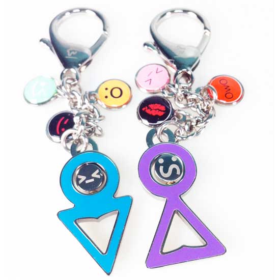Giving off a youthful and stylish air, this charm key chain is designed with various emoticons, and colorful charms are added for extra decoration. Made of brass and stainless steel, this key chain also features designs made with boys and girls.