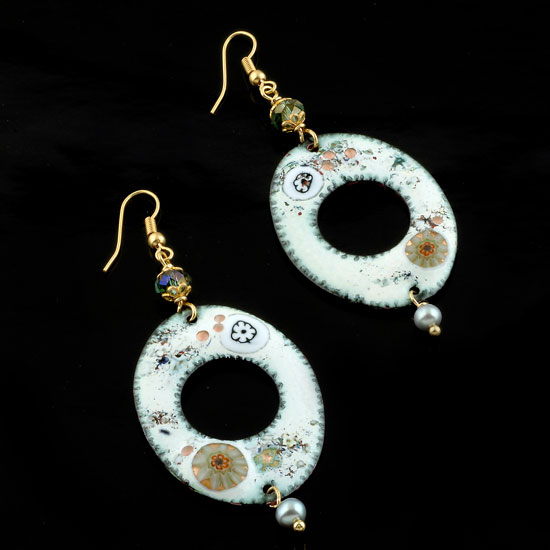 Featured is a pair of hollow earrings crafted with enamel. The flat earrings swing and sway with your every body movement. The pair exudes an oriental charm with the exotic patterns.
