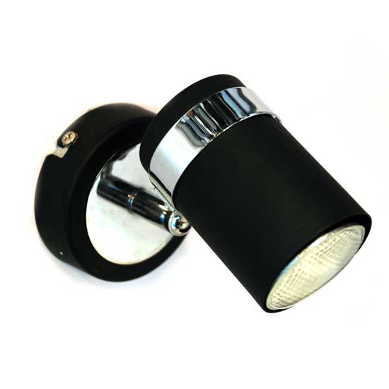 The spotlight boasts a cool-black steel finish with silvery accents for a stylish touch. It illuminates with a 9W CFL, offering exceptional brightness with low power consumption. This spotlight is an excellent choice for household, gallery and showcase applications.