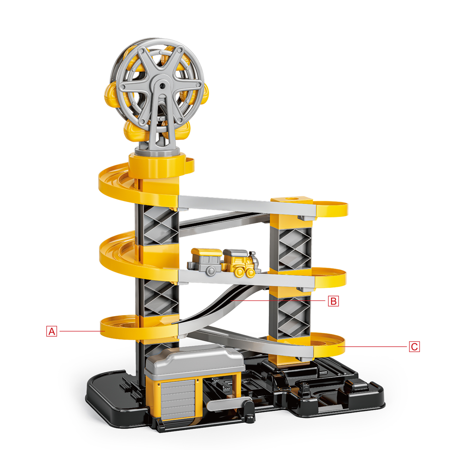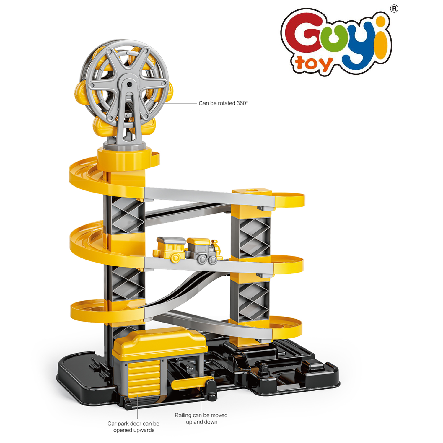 Simulated Ferris wheel design, can rotate 360 degrees. Kids build the track and put a train or ball on the top,then they slides to the bottom through a 360-degree rotating track, speeding, and slides directly from the top to the bottom. Delight your toddler as the cars/balls speed down the ramp and take part in their car races over and over again.