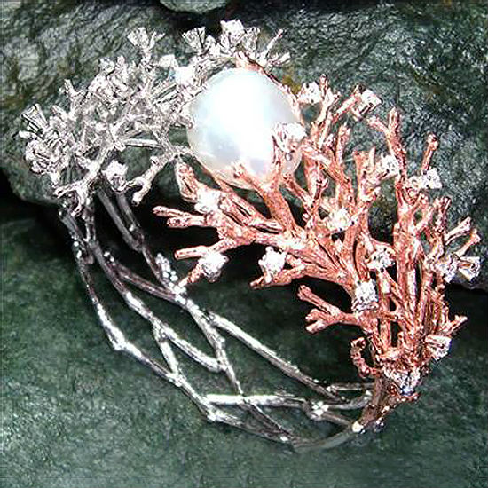 This exceptionally beautiful and sophisticated bangle features a unique design inspired by the love of the sea and the natural world. The coral design with intertwined diamante-embellished twigs combines with the silvery-white baroque pearl to exude a feminine sexuality and class. With the finest craftsmanship, this bangle will make a great addition to your jewelry collection.