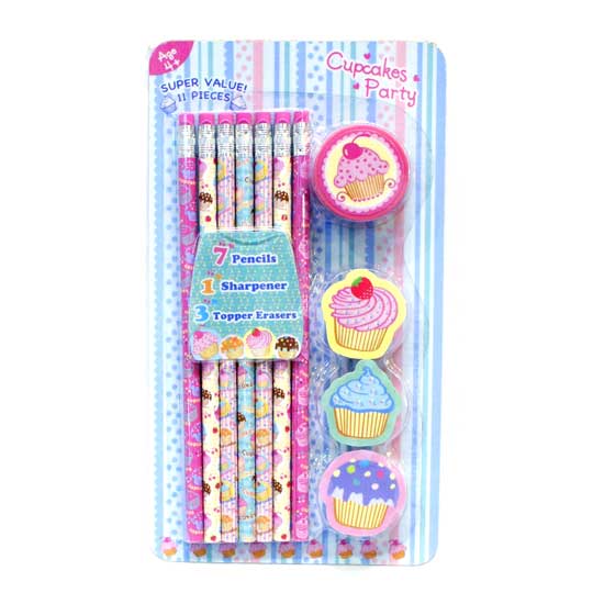 The eraser pencil set is made of eco-friendly material. The set includes seven pencils, one sharpener and three topper erasers. This super-value 11-piece stationery set makes a great gift for your little one.