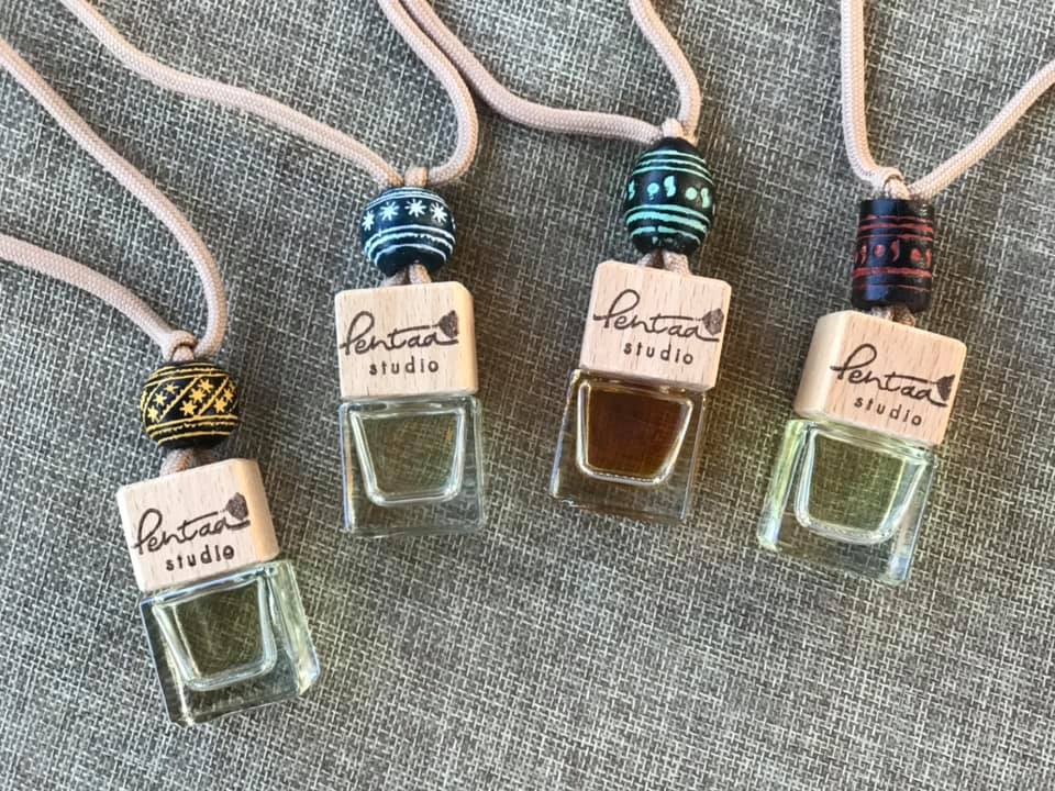 • Calming essential oil necklace set.