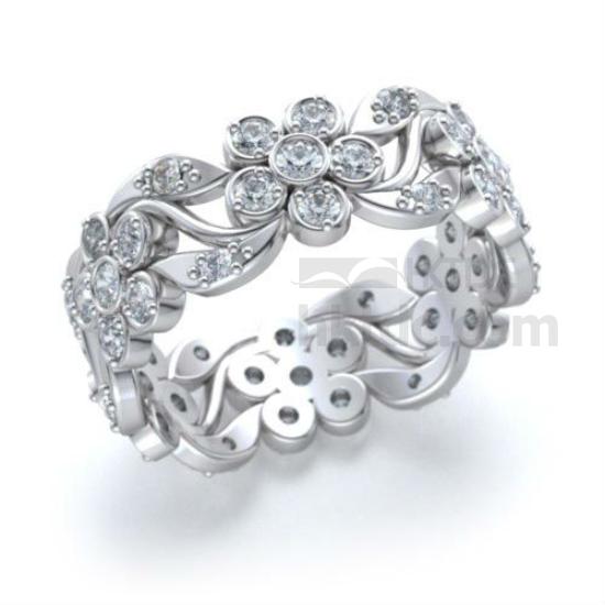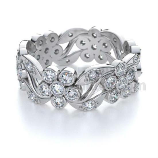 Eternity Flower Round Cut Diamond Ring In 14k White Gold