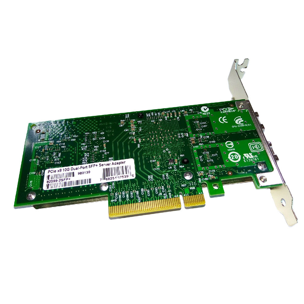 Intel’s third-generation 10 GbE controller, the Intel® 82599 10 gigabit Ethernet controller continues to build on the innovative trends set by its predecessor. The Intel 82599 10 gigabit Ethernet controller is a single-chip, dual-port 10 GbE implementation in a 25x25 mm package. It reduces bill of materials (BOM) cost and design complexity by integrating serial 10 GbE PHYs and provides both simple firmware interface (SFI) and KR interface. The device is designed for high performance and lower memory latency. Wide internal data paths eliminate performance bottlenecks by efficiently handling large address and data words. With industry-leading power consumption, a small footprint, and integrated PHYs, the controller is ideally suited for server blades, LAN on motherboard (LOM), network interface card (NIC), and mezzanine card implementations.
