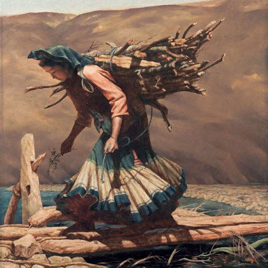 This embroidered art depicts a girl of the Yi ethnic group carrying firewood at her back. It boasts amazing vividness with close attention to supple details. This awesome piece of hand-embroidered art makes a wonderful gift choice and decoration.