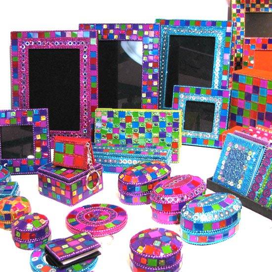 This is a series of ethnic mosaic accessories. There are all kinds of mosaic household products including photo frames, containers and jewellery boxes and also purses.