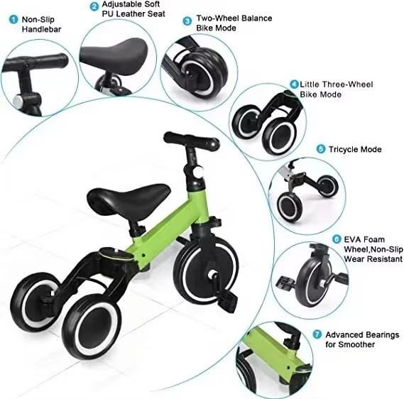 European Standard 3-in-1 Children Tricycle Kids Balance Bike Baby Walker Plastic Ride-On Car with Adjustable Handlebar Seat for 2-6 Years