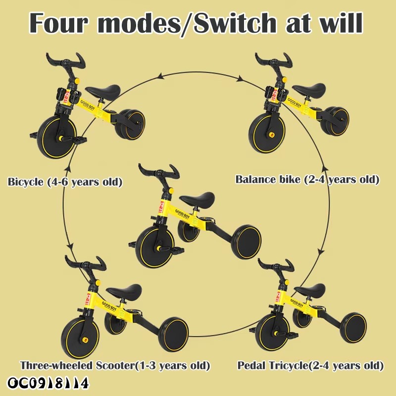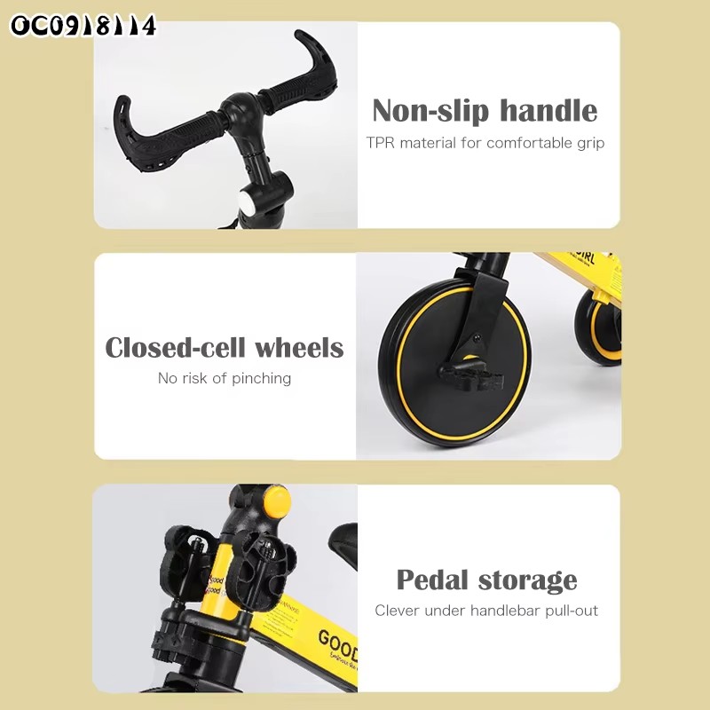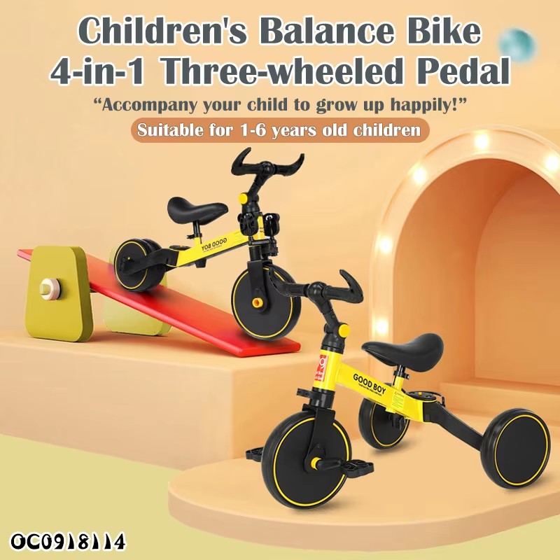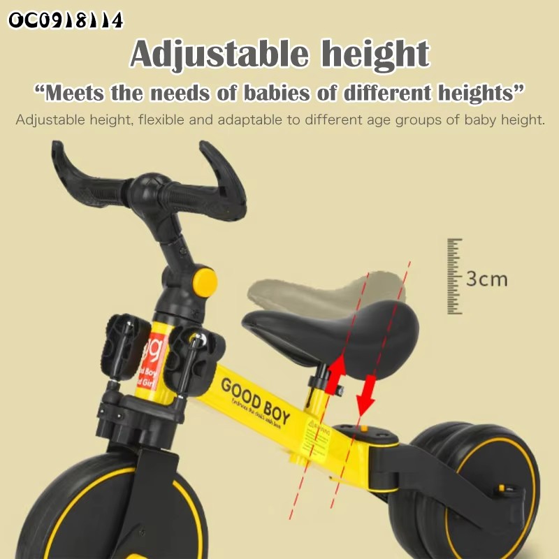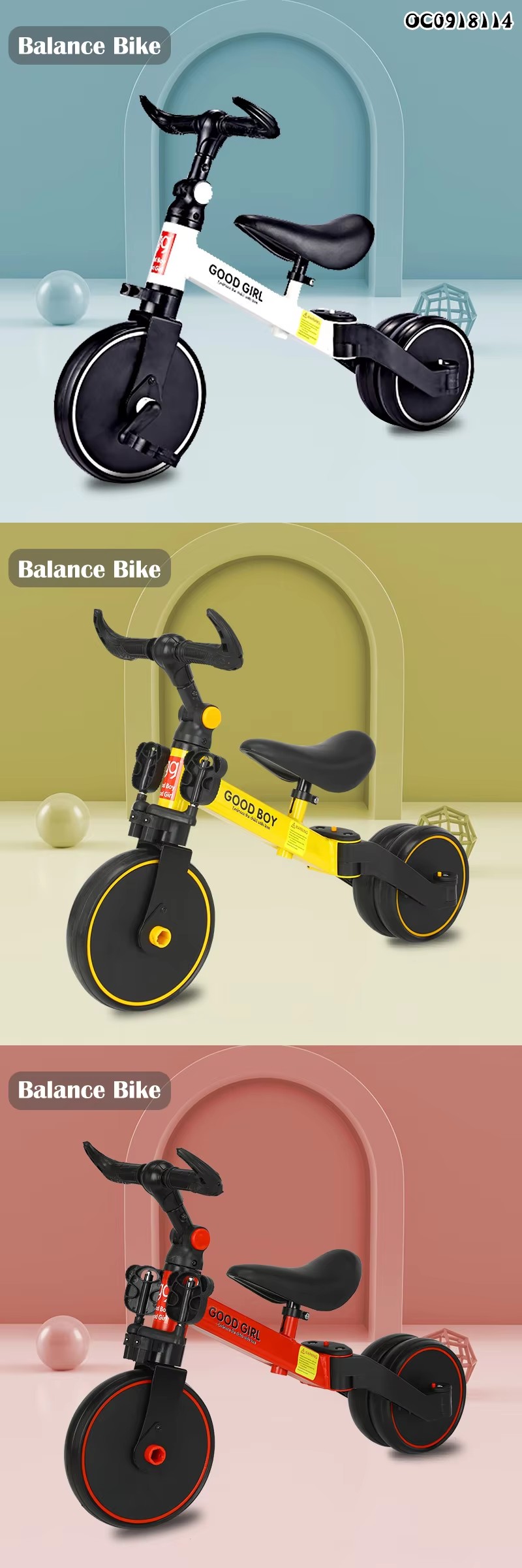 European Standard 3-in-1 Kids Balance Bike Baby Walker Tricycle Plastic Ride-On Car with Adjustable Handlebar Seat for 2-6 Years