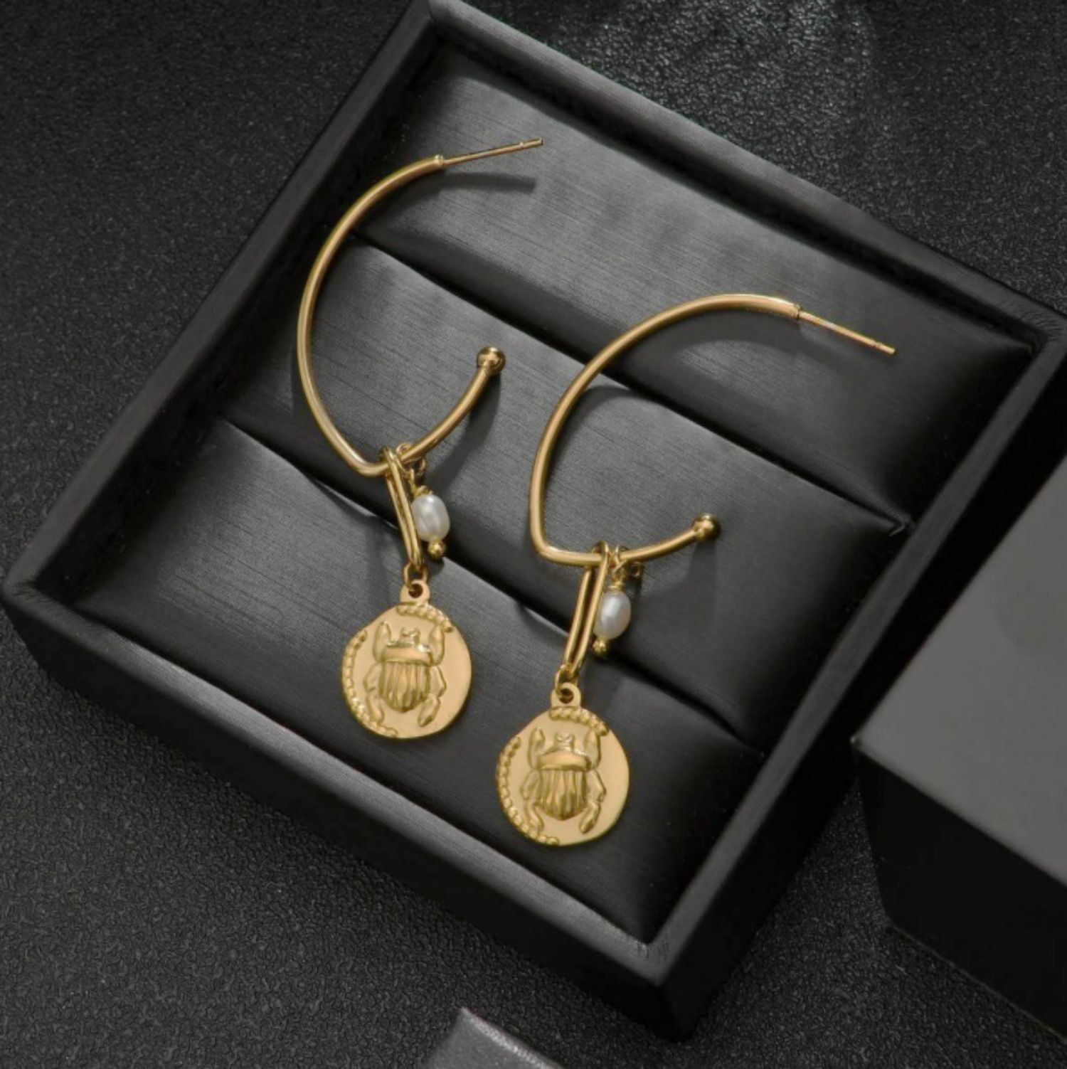 European and American cross-border retro earring jewelry titanium steel insect pearl earrings bee earrings