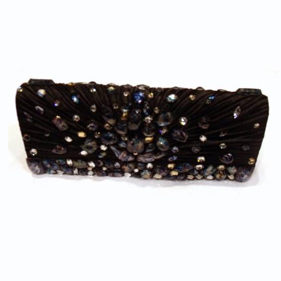 This evening clutch bag has a lightweight structure with a large capacity. The black semi-precious stones offer extra glamor. This evening handbag is especially suitable for gorgeous ladies.