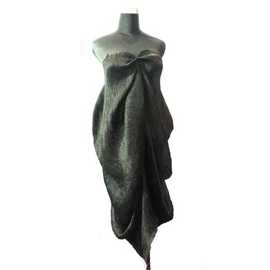 The featured evening dress comes with a sweetheart neckline. The dress comes in a plain color, yet it looks stylish with the pleated fabric. The creative cutting is inspired by montage technique for a fashionable appearance.