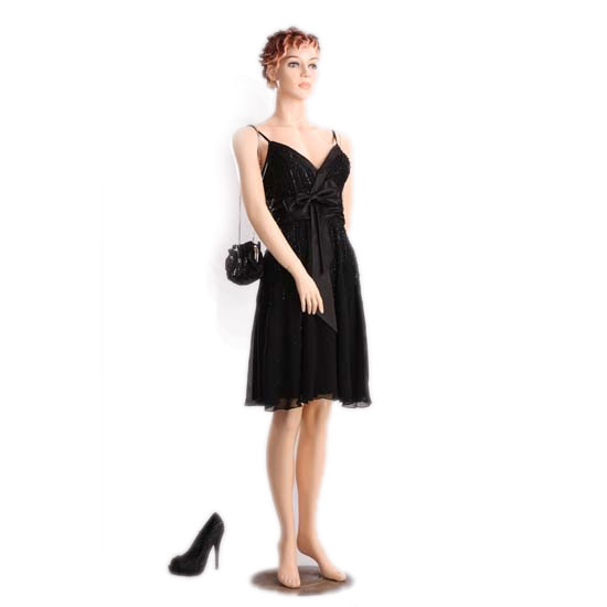 Pictured is a LBD (little black dress) that is suitable for ballroom events or any parties. The polyester georgette shell exhibits a touch of mysterious elegance along with the sweet heart neckline. This lovely dress is suitable for formal occasions.