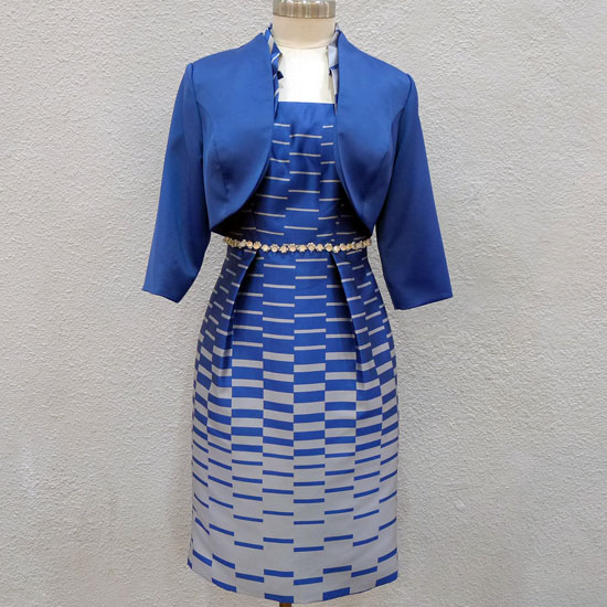 This is a ladies' evening dress that is accented with jacquard patterns for a decorative touch. It is fitted shimmering waist belt. This ladies' dress is ideal for suiting your figures perfectly.