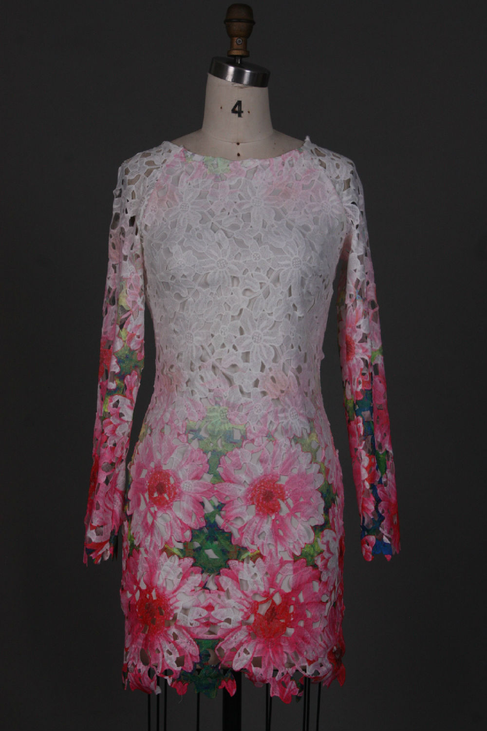 The displayed dress comes with a floral lace top and is adorned with colorful floral patterns. It is well-crafted to ensure good quality and flaunts a fashionable and stylish look. Ladies can wear this dress to different occasions like wedding, party, or graduation ceremony.