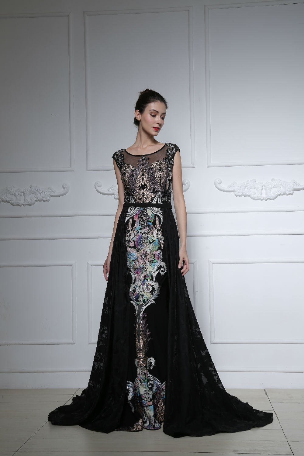 The dress is designed by combining the satin fabric and lace adult fashion dress