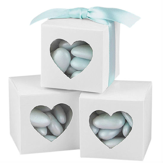 white Wedding Candy Boxes with Heart Window on Front 5*5*5 CM