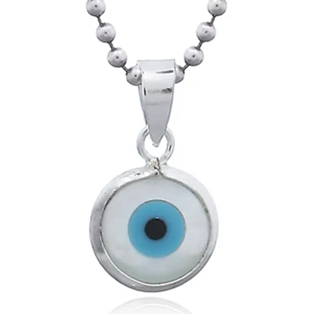 Evil Eye In Mother Of Pearl Shell Rounded Silver Pendant