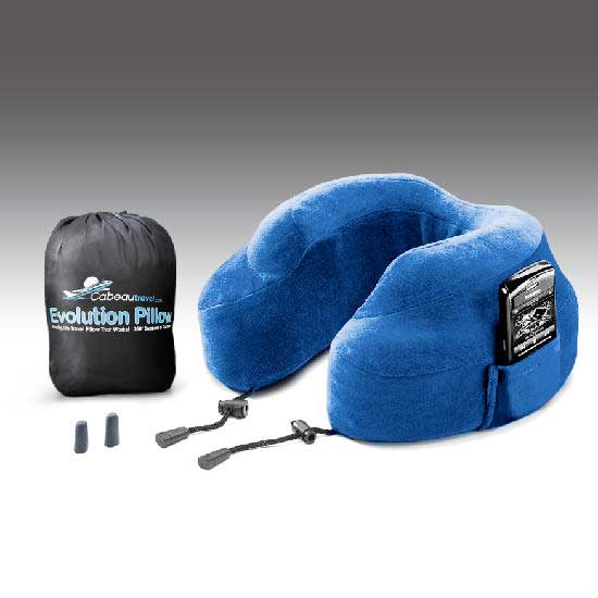 The memory foam filled evolution pillow is the answer to finally being able to sleep comfortably while in a seated position. It is patented in many countries worldwide, and has many patents pending worldwide. There are lateral and frontal stabilization supports and many other features that significantly improve upon the traditional U-shape pillow.