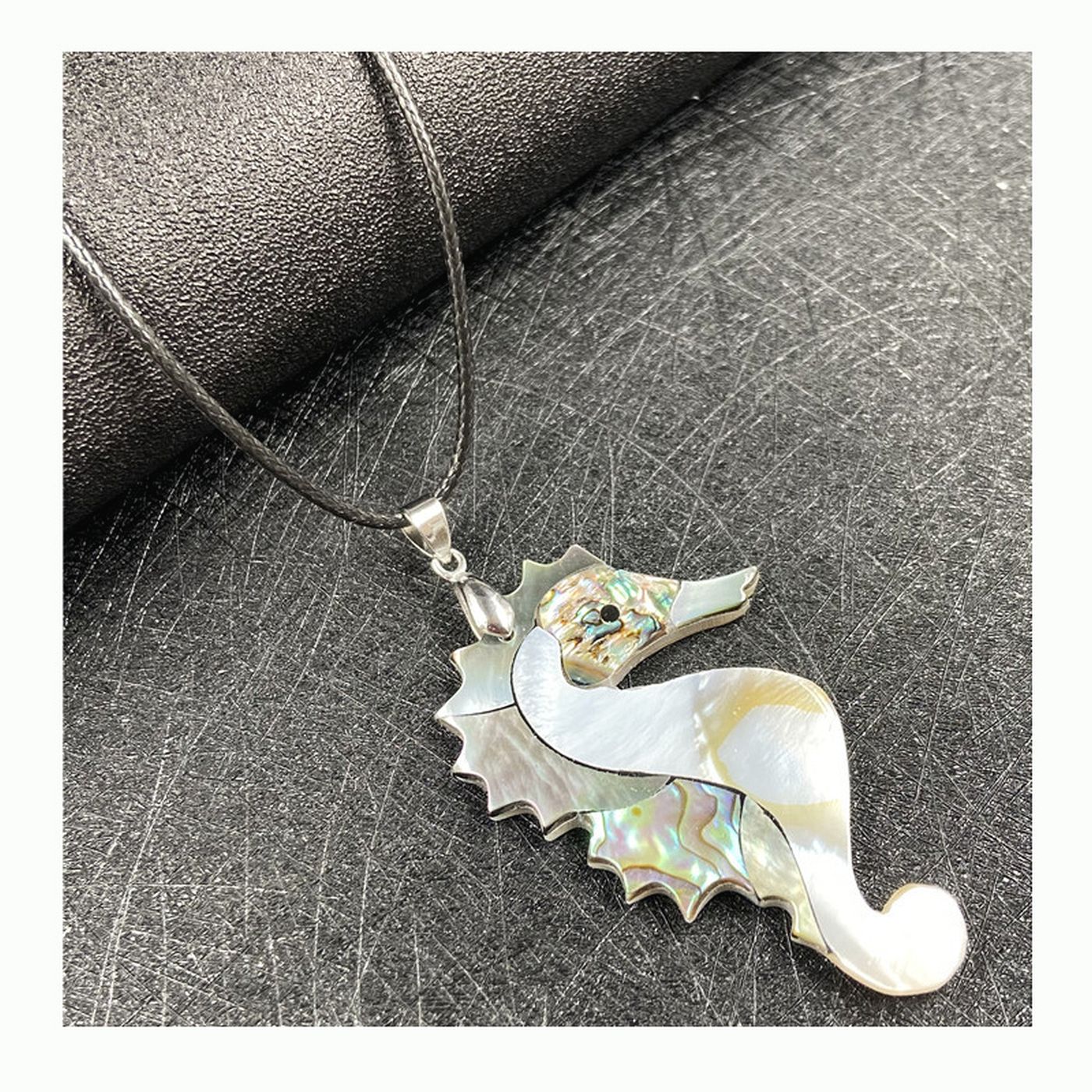 As shown is a high-fashion seahorse style with shell parts silver plated necklace