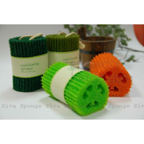 Showcased is an exfoliating sponge flaunting a cylindrical shaped layout for a handy grip. The soft construction is enriched by corrugated surface that can remove the dead skin cells effectively. Scrub your body by using this exfoliating sponge so that your skin will become smooth and bright. It is equipped with a hanging cord to bestow ultimate convenience.