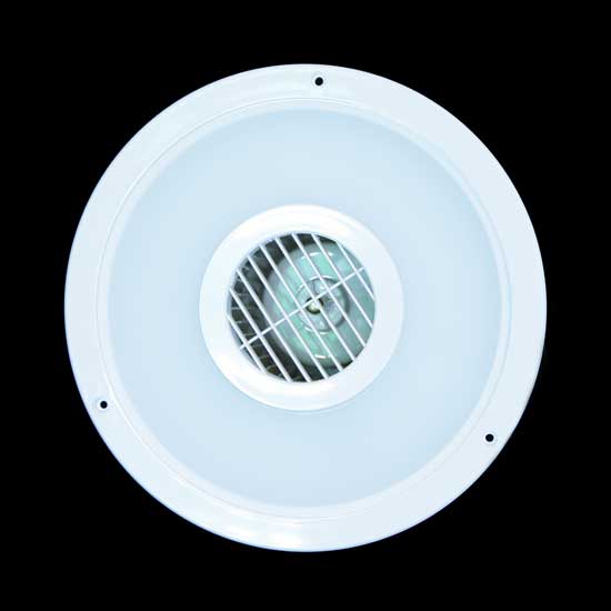 The round-shaped exhaust fan features an LED lamp with a frosted diffuser. It is stylishly finished with a pure-white rim for an exclusive look. Enhance ventilation of your room with this exhaust fan with light.