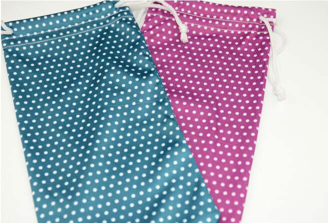 Eyeglasses packaging bag displayed is made of microfiber with silk printing logo