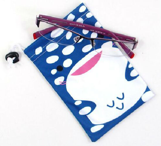 Eyeglasses pouch displayed is made of microfiber with silk printing logo