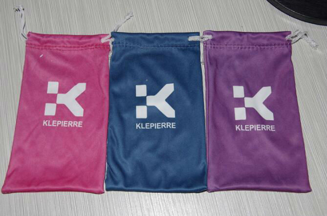 Eyewear packaging bag displayed is made of microfiber with silk printing logo