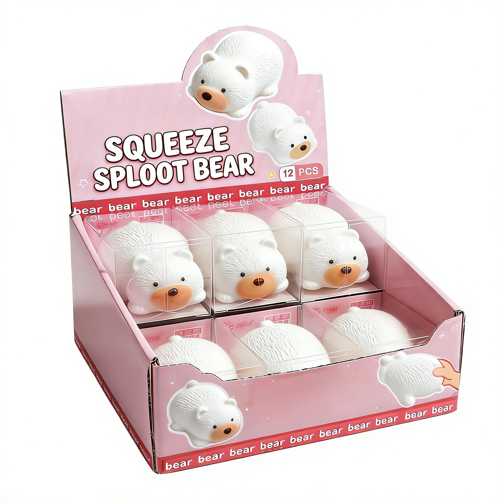 TPR Squeeze sploot polar bear in PVC box & display box