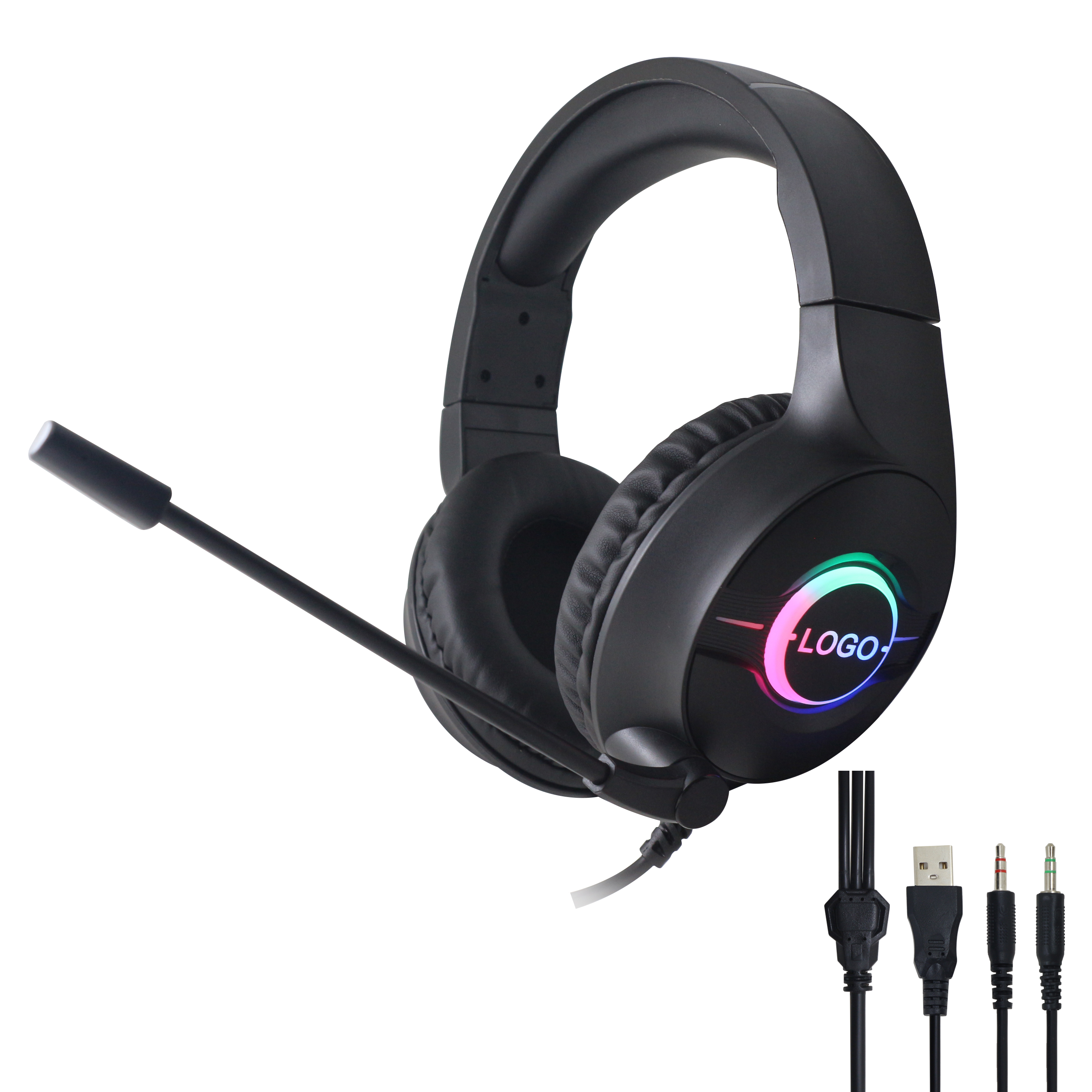 RGB lights low latency wired gaming headsets headphones with HD call and stereo sound