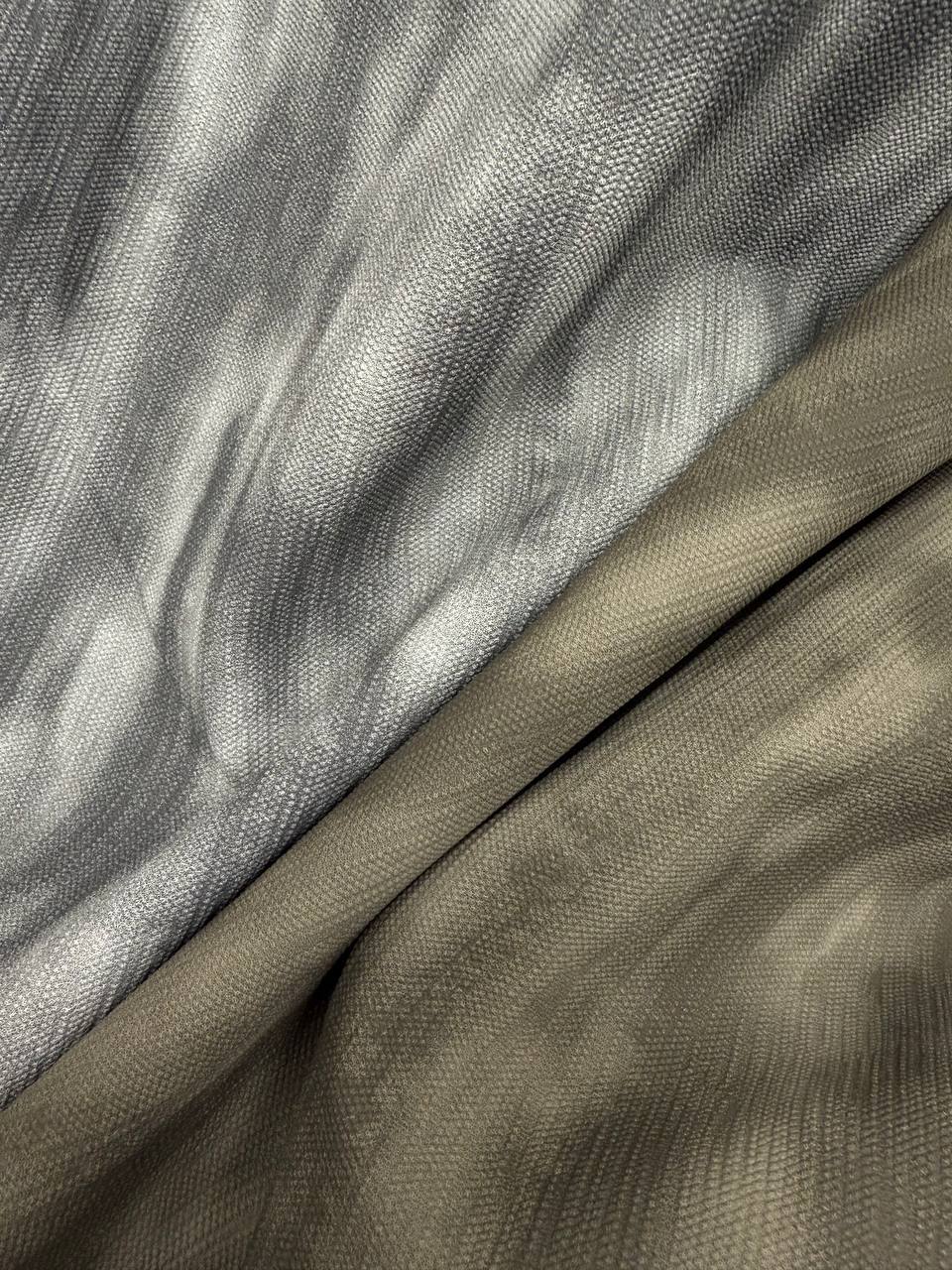 This is a high-quality, stylish, and functional material that combines modern design with practicality. Its unique tie-dye coloring technique creates smooth transitions and artistic accents, making every piece one of a kind. The soft, pleasant-to-the-touch backing ensures comfort during both crafting and use, while the slightly rubberized front surface enhances durability and water resistance. This material is perfect for creating clothing, accessories, footwear, or interior design elements.