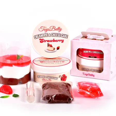 Texture: FINOCLAY DIY Slime kit includes delightful butter slime and clear slime in a cake-inspired design, complemented by a variety of accessories such as adorable pot stickers, cake slices, cute strawberry , and vibrant green leaves. Make a slime cheesecake with beautiful clear jelly slime and butter chocolate slimes, designed to look like the real cheesecake containers too! Open them and learn to make a cheesecake!