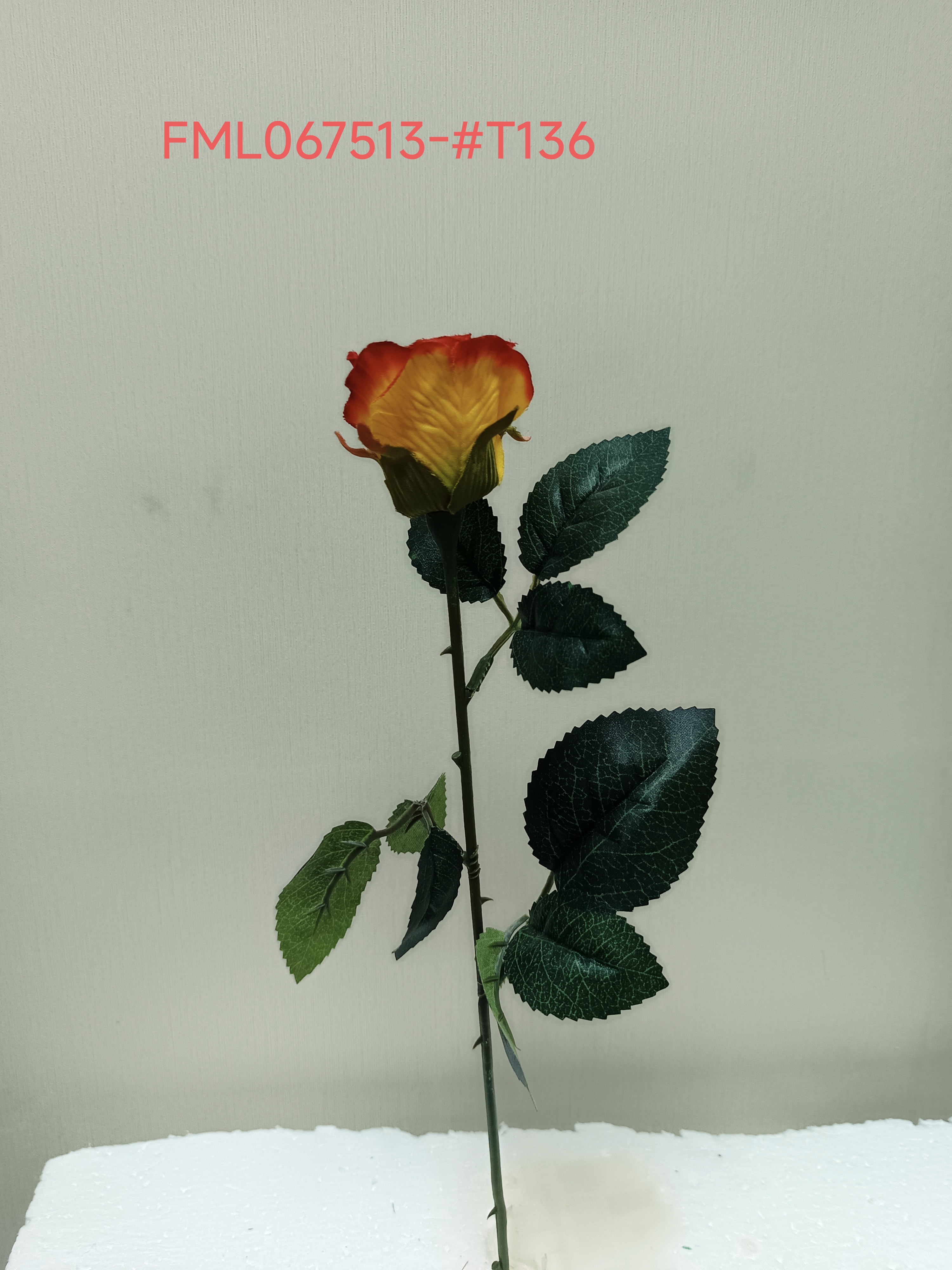 SINGLE SATIN PRINTING ROSE BUD W/3 SET LVS (THINER STEM) PACKING: 6DOZ / 60DOZ / 7.5' COLOR: #T136