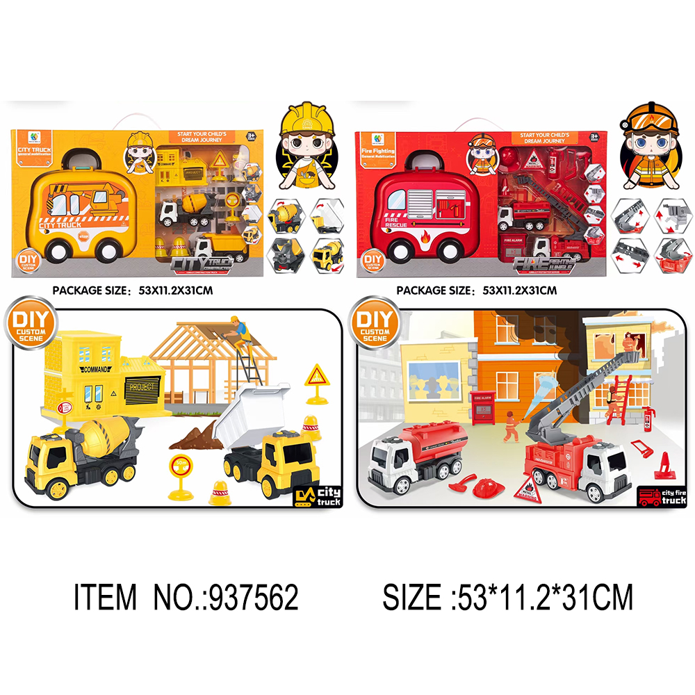 FRICTION TRUCK & FIRE ENGINE PLAYSET,EN71 PART1-2-3/PHTHALATE TEST.