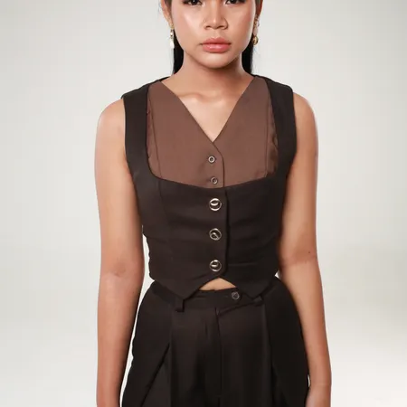 FEBBY VIOLA ANATASYAFV/SS/DBLYRVST/BRA double layer vest with side fagoting details and a gold button closure.
