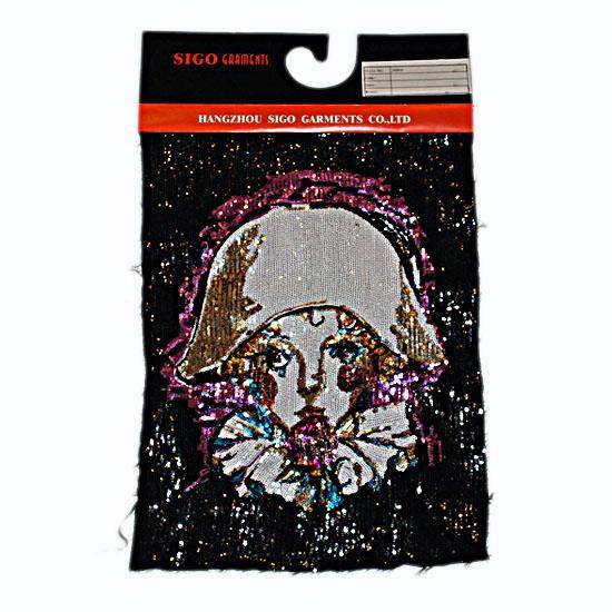 The fabric flaunts a unique design with a cartoon girl image. It comes with sequin decorations to add a touch of style. This fabric is ideal for making T-shirts, blouses and other garments.