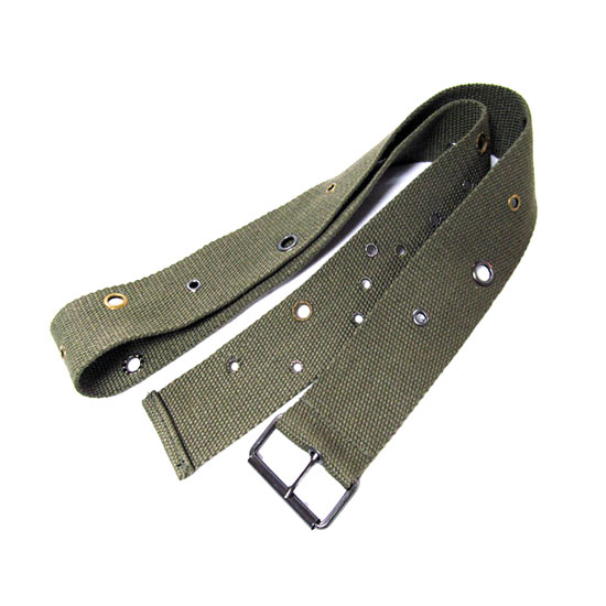 This is a fabric belt that comes in allover army green for modern elegance. It is designed with a metal buckle and small eyelets. This fabric belt pairs with your outfit easily.