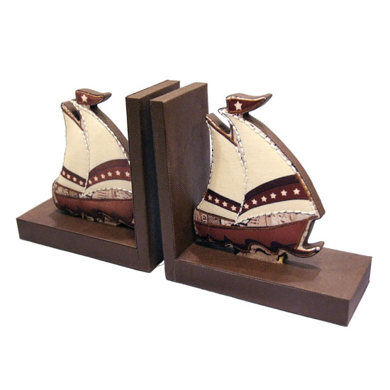 The bookend is designed to support an upright row of books and prevent books from falling over. Made of fabric, the bookend comes with a neatly squared corner. The meticulously-designed ship adorns this fabric bookend.